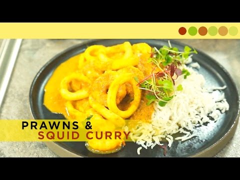 Prawns Squid Curry | Seafood Recipe | Chef Atul Kochhar - Prawn And Calamari Curry Recipe - Ingredients - Onion, Chilli, Ginger, Curry Leaves, Coriander Powder, Red Chilli Powder, Coconut Oil, Shallot, Coconut, Tamarind Paste, Prawns, Squids, Salt, ...