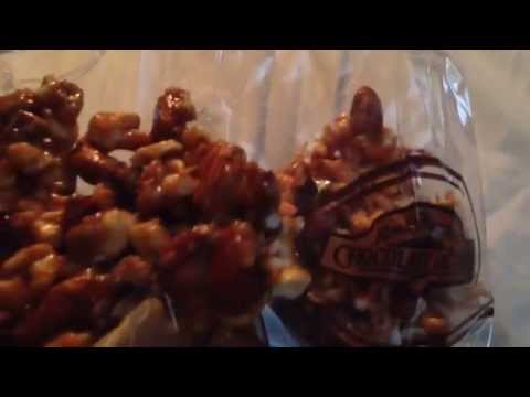 Caramel Popcorn With Almonds And Pecans }}- Reviewing a delicious treat from the Rocky Mountain Chocolate Factory in a Troutdale, Oregon.