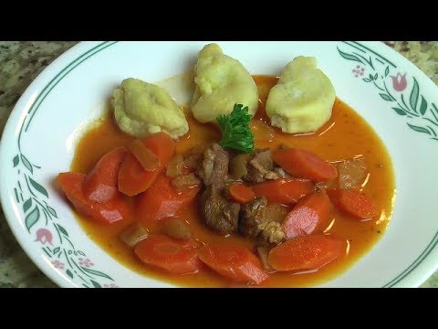Žlikrofi with Bakalca, Slovenian recipe - Zlikrofi Recipes - Classic Slovenian dish featuring dumplings with lamb stew that originated in Idrija. Žlikrofi Ingredients: 1 tbsp chives 3 slices bacon 3 potatoes 1/2 onion 2 egg 1 ...
